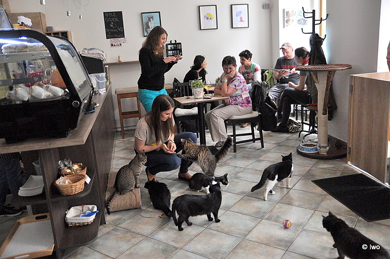 Kočičích kaváren je po Praze víc, ale ta přímo v samém srdci Karlína je asi nejvíc vyhlášená. Jedná se o rodinné, útulné místečko, které vzniklo za účelem poskytnutí možnosti relaxu pro všechny, kteří si chtějí odpočinout od šedi všedního dne ve společnosti kočičích mazlíčků. V nabídce naleznete kvalitní produkty z domácí vegetariánské kuchyně, sehraný tým baristů vám vždy připraví výtečnou kávu a zasvětí vás do tajů kočičího ráje.